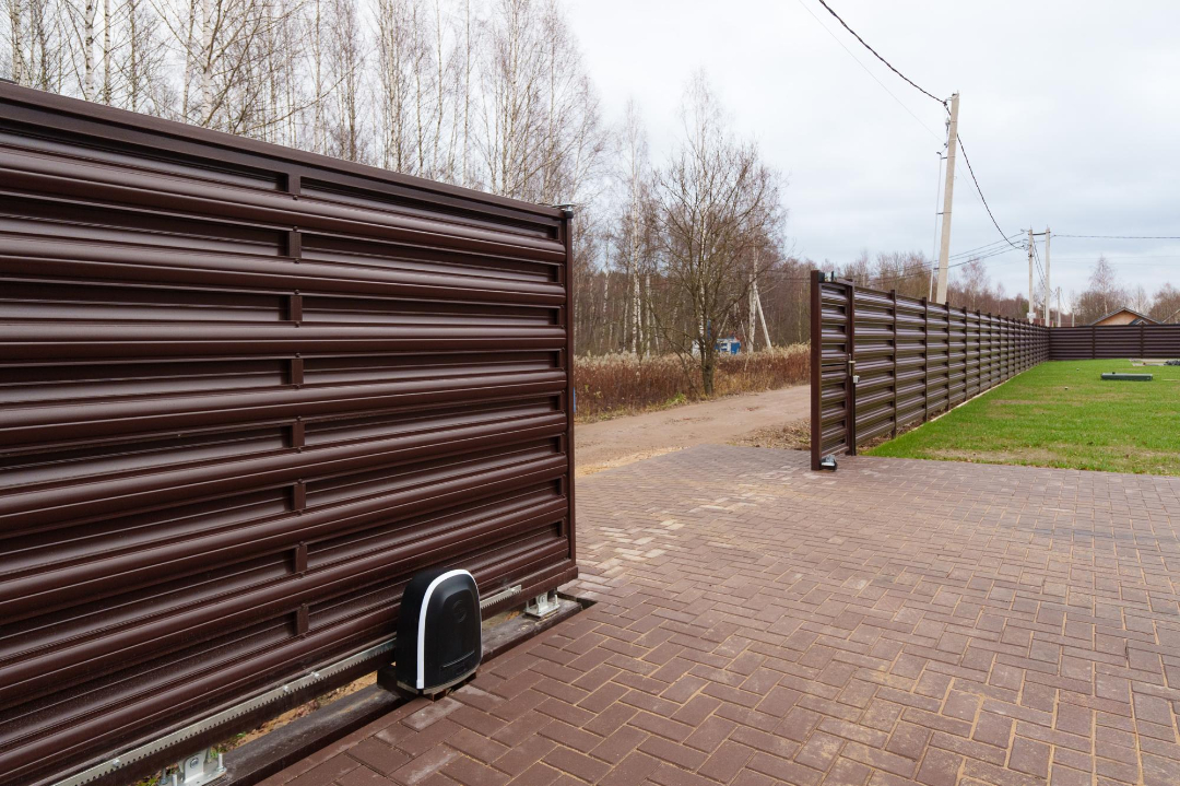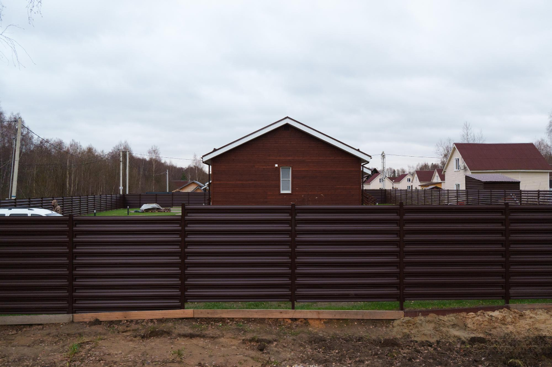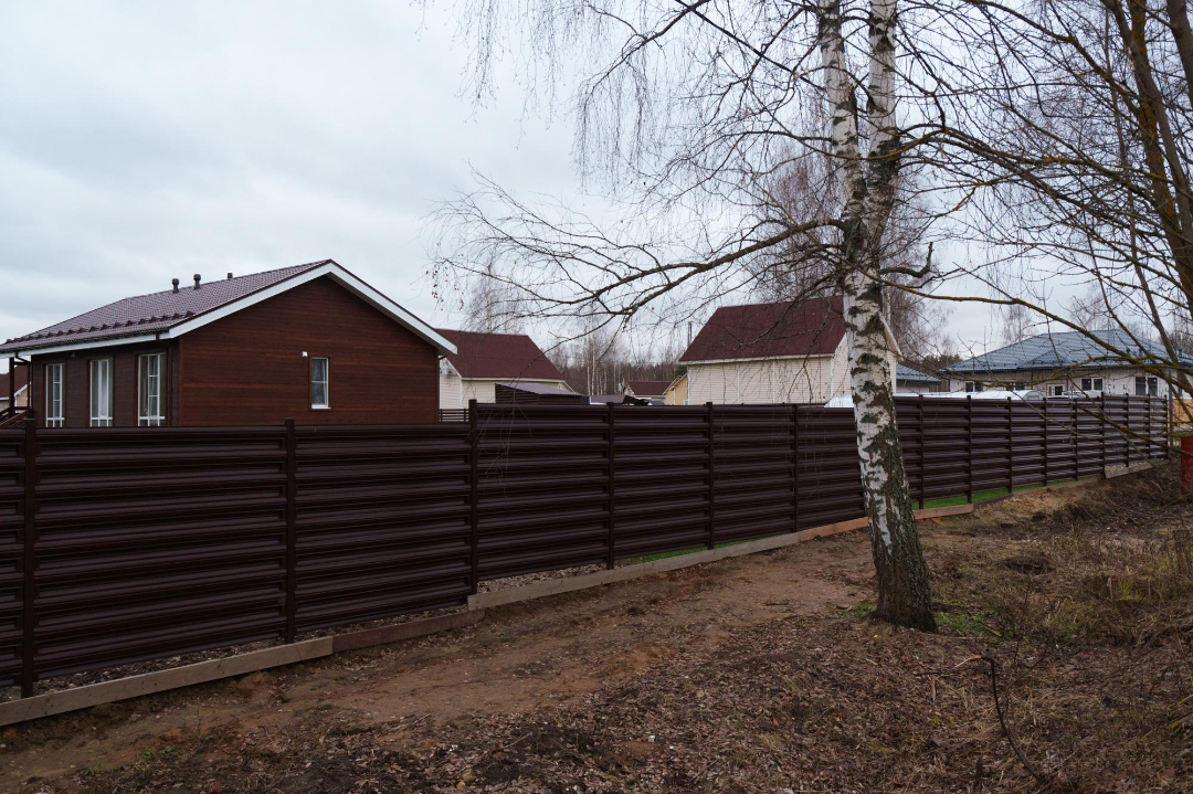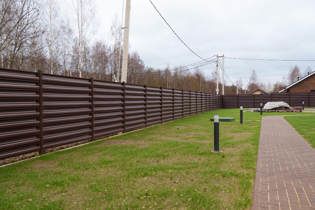 ✔️Контур участка выполнили из профнастила в цвет фасада из еврожалюзи